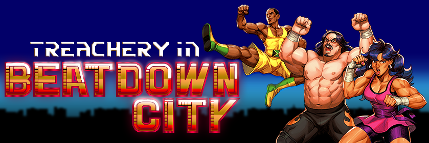 Treachery in Beatdown City is a dark comedy action street fighting thriller that gives players the freedom to fight how they want against an increasingly ridiculous cast of enemies. lol The US President Blake Orama has been kidnapped by Ninja Dragon Terrorists! Take to the streets with 3 unique fighters - Lisa, the Boxing/MMA expert, Brad, a pro-wrestler with a love of fire, and Jeet Kune Do/Capoeira fighter Bruce. Use an all new tactical-brawling system to fight through hoards of disorderly thugs, shouting drunks, disorderly cyclists, entitled joggers, rapping grapplers, affluent punks, ninjas, terrorists, ninja terrorists, cyborgs (?) and MORE! Will they save the president? You have to play to find out!